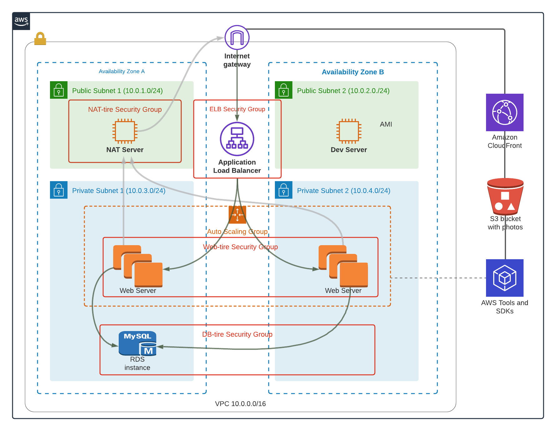 Hosted a photo album website with the below infrastructure with scaling group, cloudfront and RDS.
